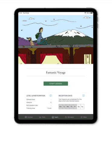 After taking a level test, the lessons adjust to your skills and interests, guaranteeing you a progression tailored to your needs. Discover